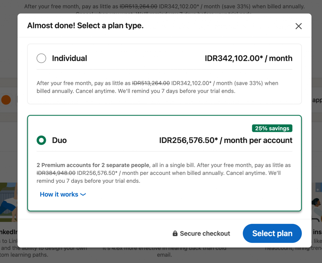 - LinkedIn Premium Career: includes Learning plus additional LinkedIn features (like InMail, job-search tools, extra profile insights).