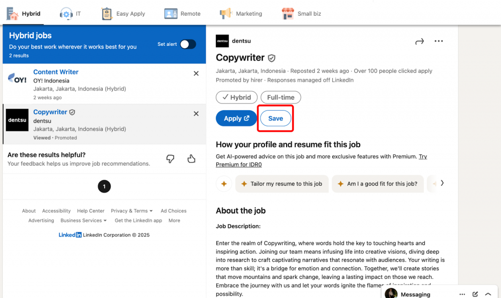 📌 Pro Tip: Use saved jobs as your shortlist. Don’t save every role — focus only on positions that genuinely match your goals, so your list stays manageable.